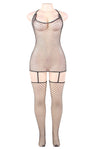Sparkle and seduce in this dazzling black fishnet bodystocking! Designed with a glamorous touch, this piece features a bold diamond-patterned fishnet with a hint of sparkle, perfect for making a statement. The deep V neckline accentuates your curves, while the attached suspender style straps connect to thigh-high fishnet stockings for an irresistibly sultry look. Please note: the thong is not included, giving you the freedom to style it with your own favourite pieces. Perfect for layering or wearing solo, this bodystocking brings sparkle, allure, and confidence to any special night in!