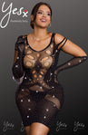 Embrace your confidence and showcase your sophistication with this stunning plus-size black bodystocking dress (gloves and thong are not included)