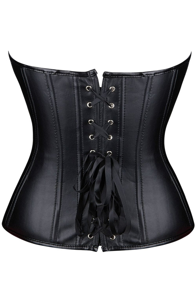 Black Leather-Look Zip-Up Corset with Adjustable Lace-Up Back
