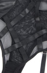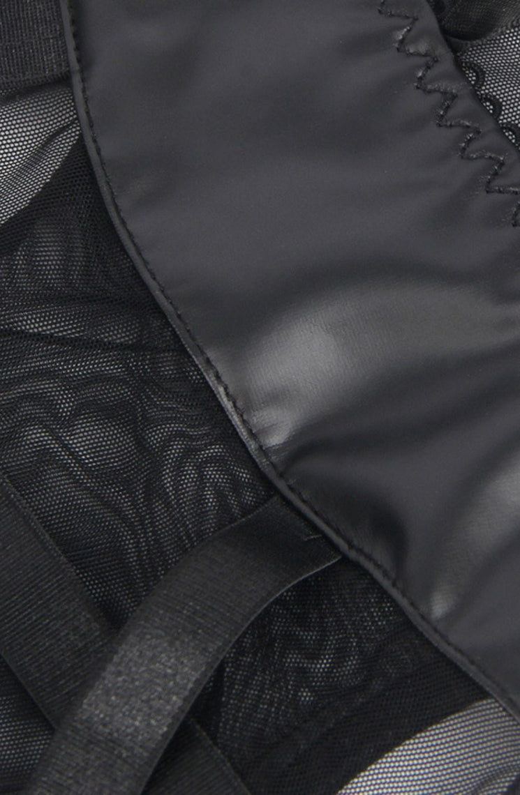 Black Faux Leather Look & Mesh Bodysuit with Garter Straps
