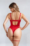 Red Faux Leather Look & Mesh Bodysuit with Garter Straps