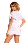 Three piece sexy bridal ruffled mesh Robe with pretty big bow belt and thong.